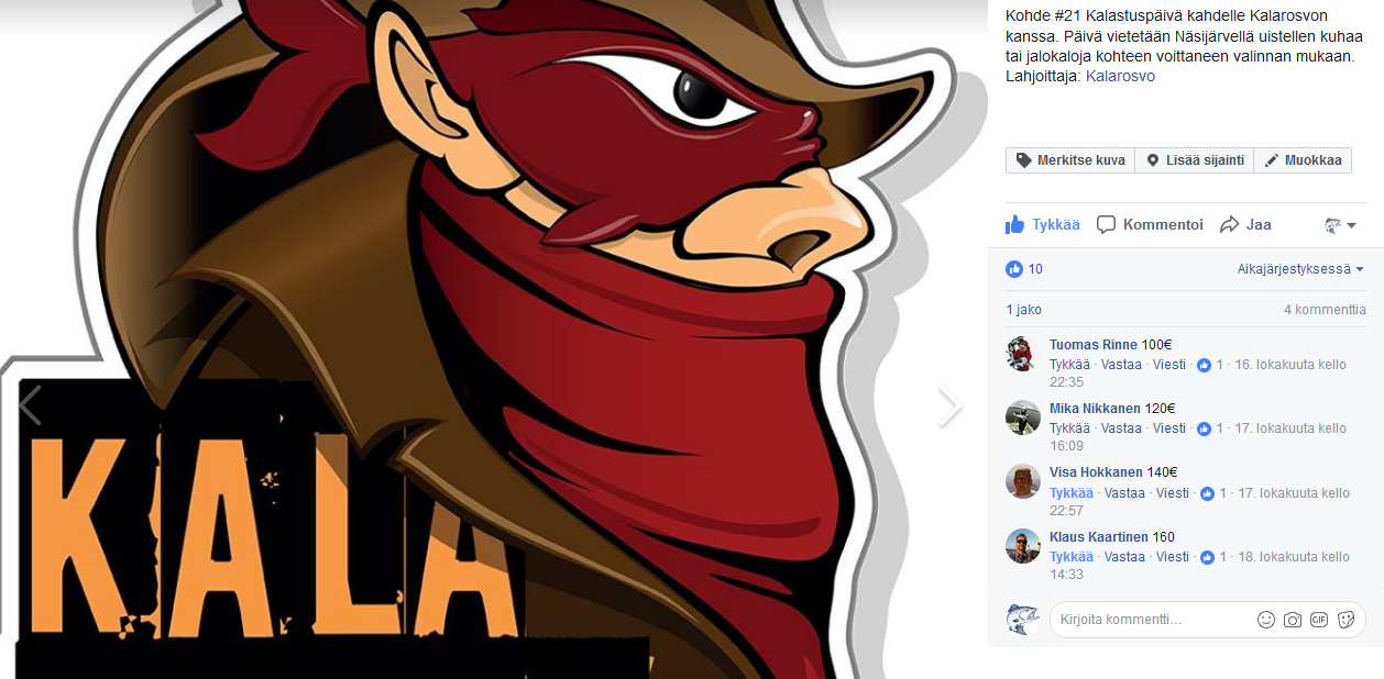 ”Näsijärven lohikalayhdistys järjestää nyt toista kertaa huutokaupan, jonka tuotto käytetään Näsijärven lohikalaistutuksiin ja virtavesikunnostuksiin. Huutokaupassa lahjoittajien ja huutajien intressit ovat samat ja tämä takaa erittäin toimivan varainhankinnan.